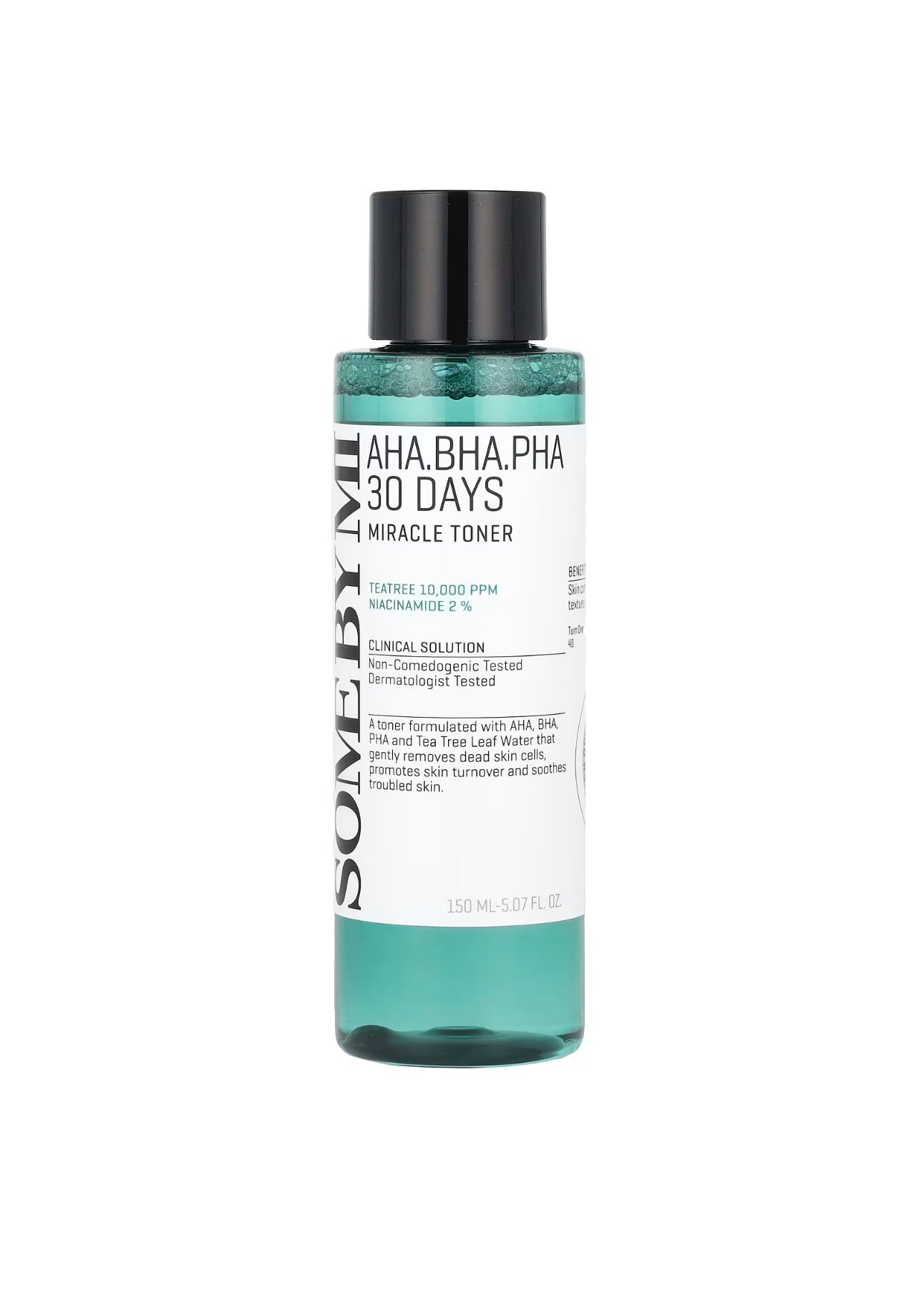 جربي تونر سوم باي مي تركيبة الـ 30 يوم السحرية، الذي يمتزج بين قوة أحماض ألفا هيدروكسي (AHA) وأحماض بيتا هيدروكسي (BHA) وأحماض متعددة الهيدروكسيل (PHA) لتجديد وتنقية بشرتك بفعالية. 🌿🌺